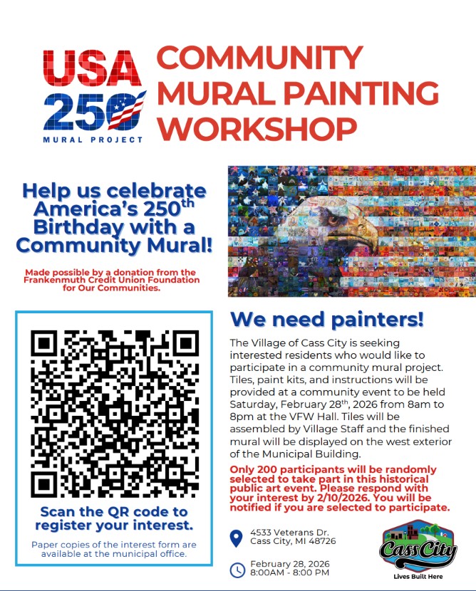 PRESS RELEASE: CASS CITY TO CREATE PATRIOTIC MOSAIC MURAL FOR AMERICA’S 250TH