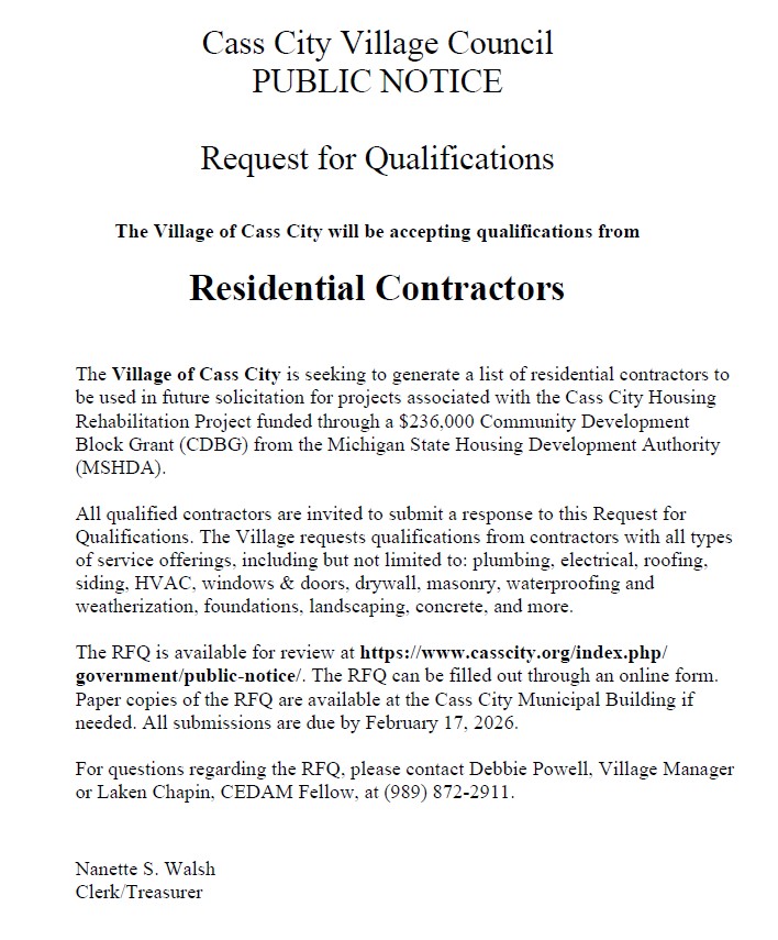 THE VILLAGE OF CASS CITY COUNCIL HOLDS PUBLIC HEARINGS AT THE MUNICIPAL BUILDING,